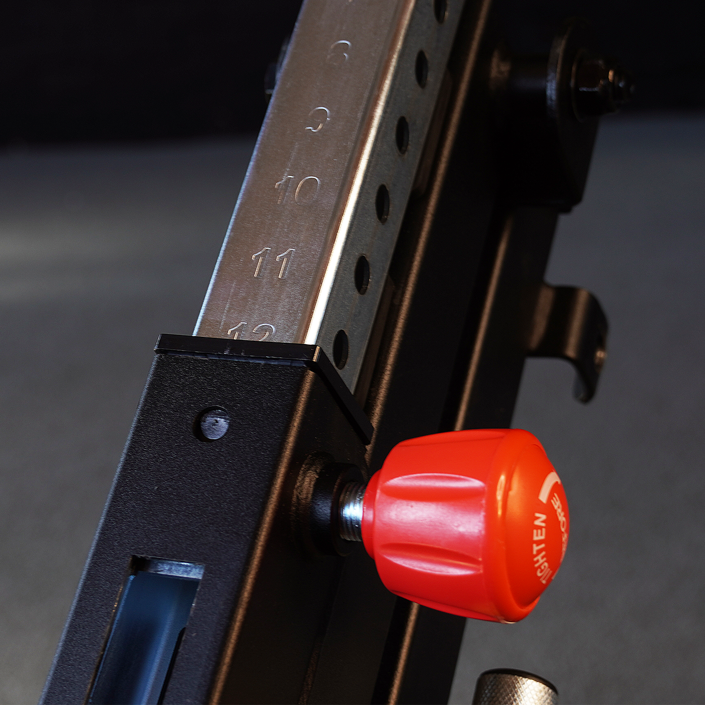 Pull the white pin at the base from its storage position and bring the bar to a vertical position. Slide the white pin back in place.