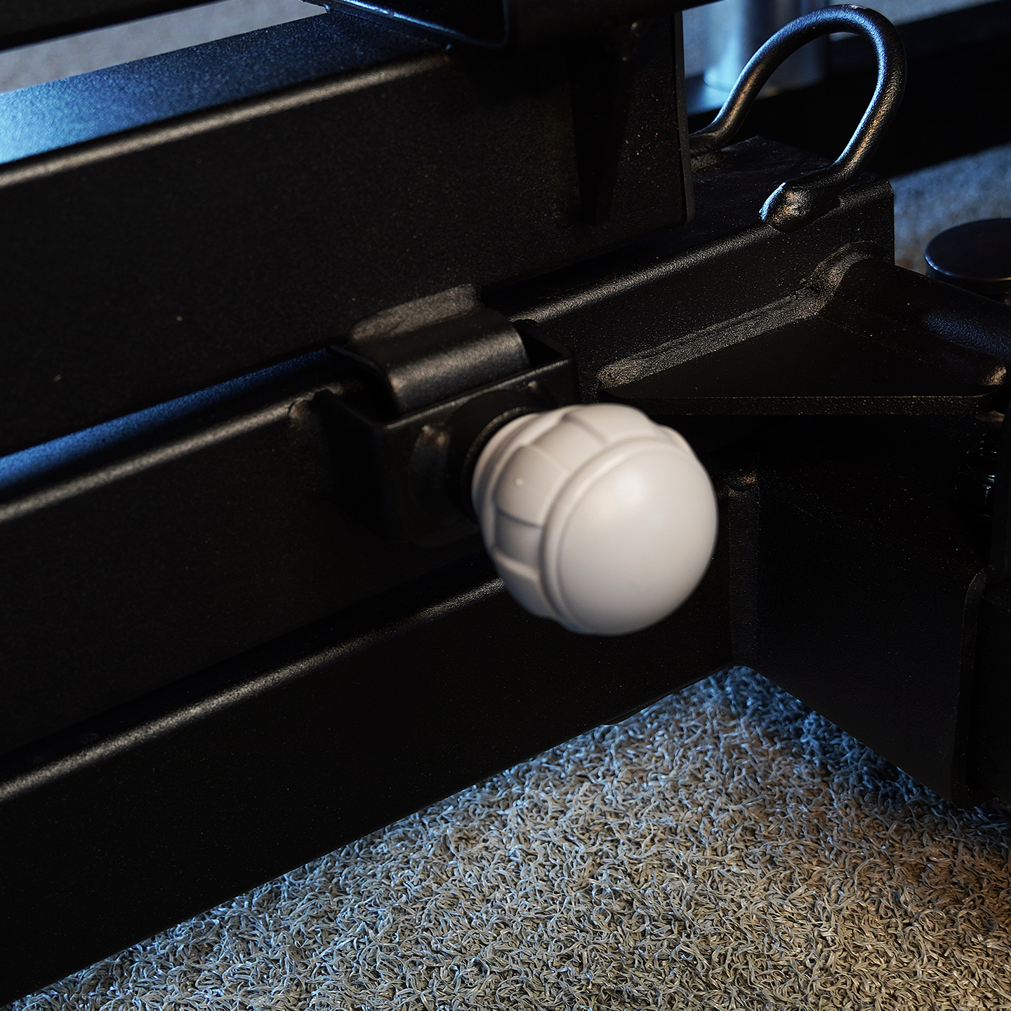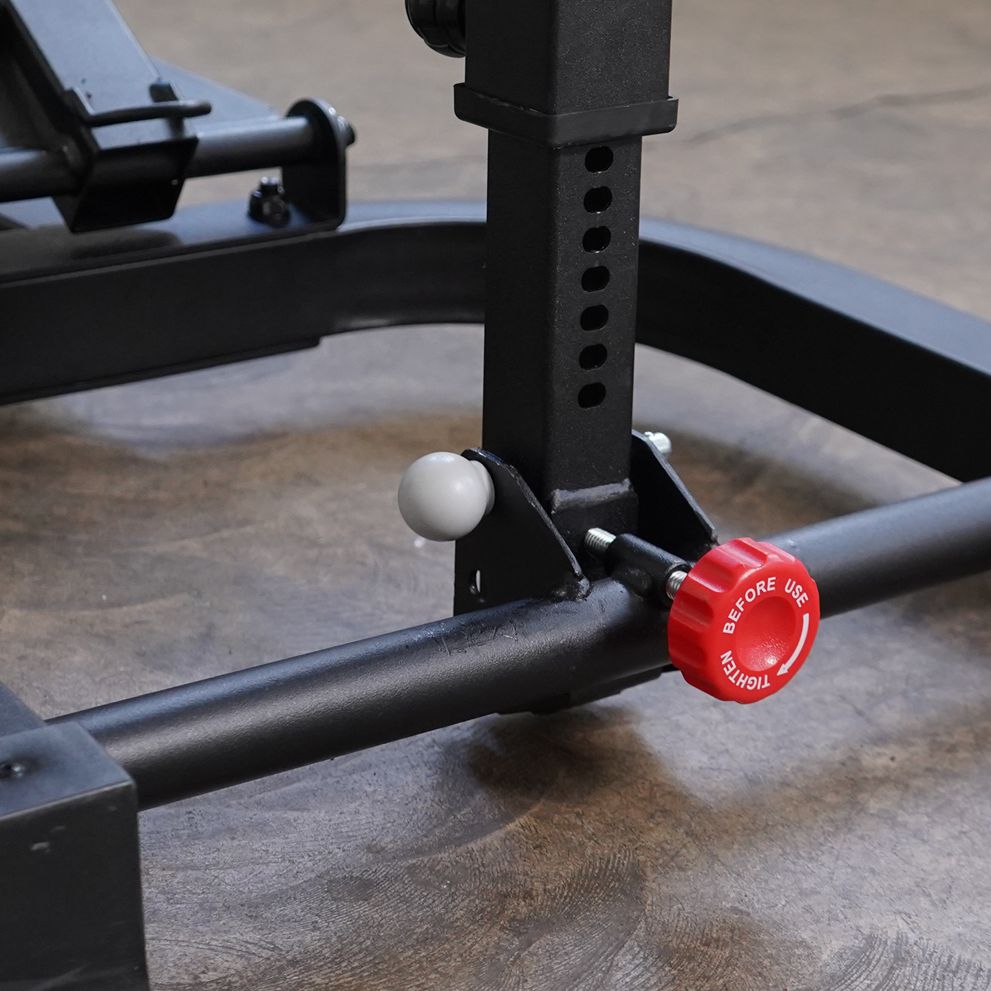 Insert ankle roller into hip thrust. Tighten red knob to secure.