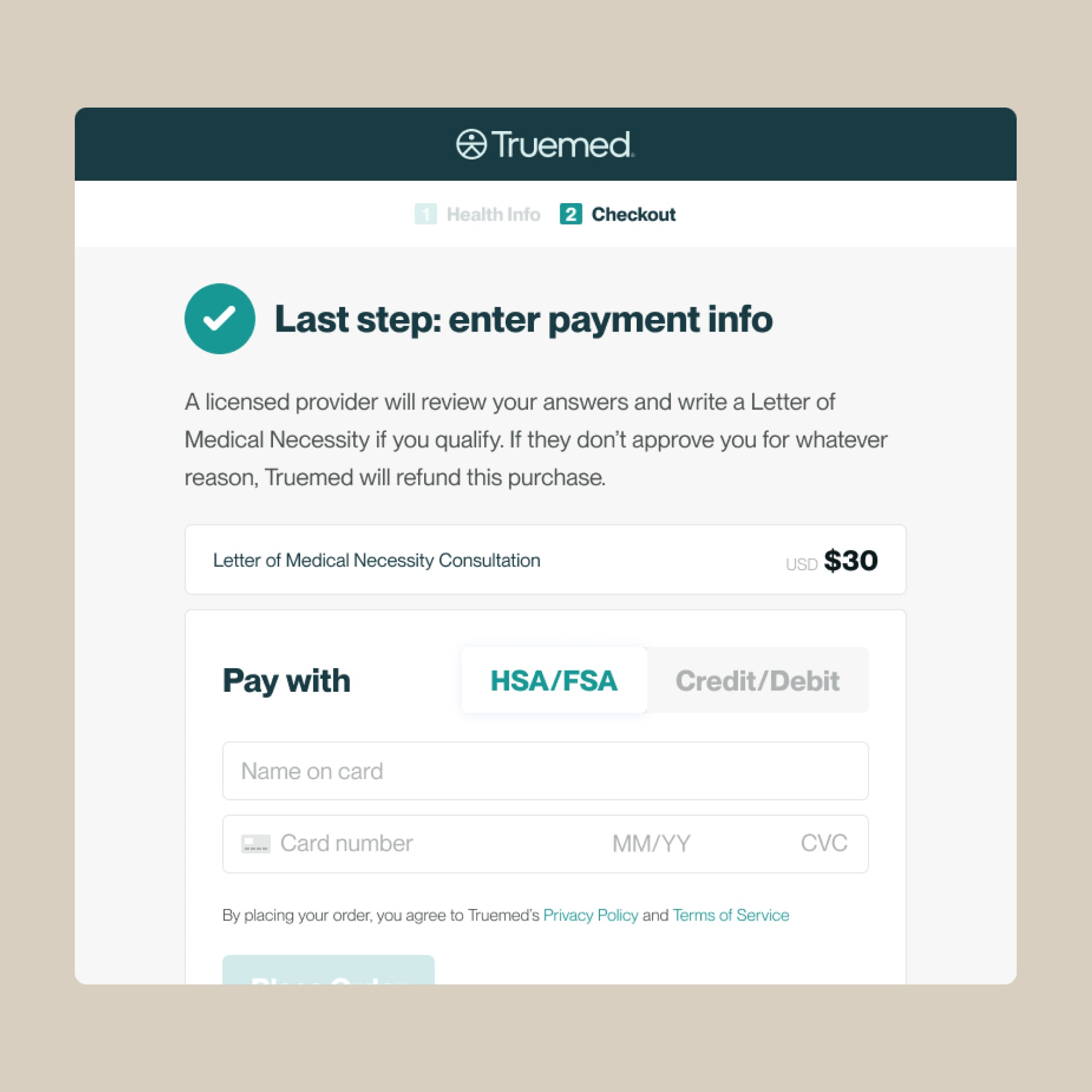 Select TrueMed as your payment method