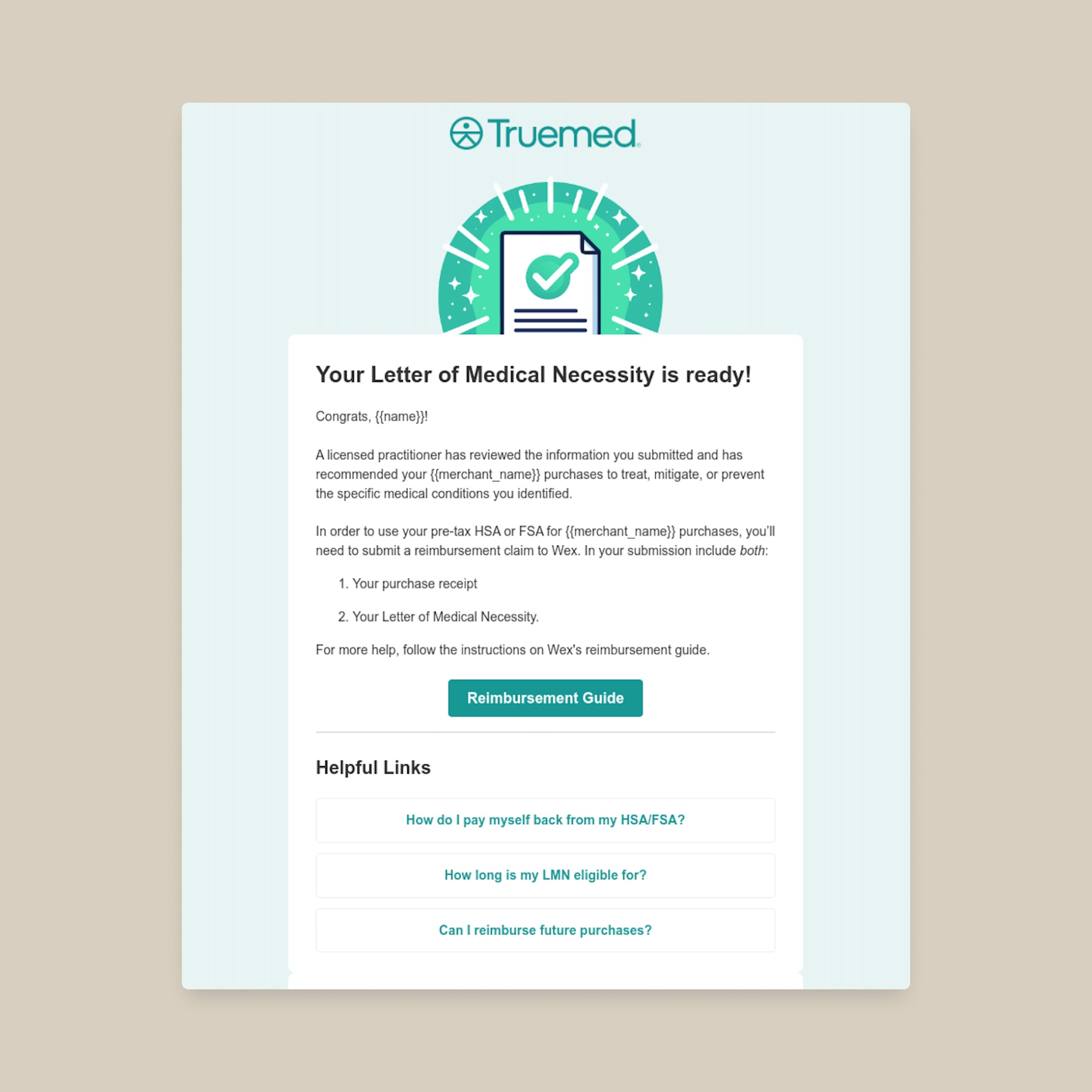 A licensed medical provider will review your responses and Truemed will send you a Letter of Medical Necessity if you qualify.