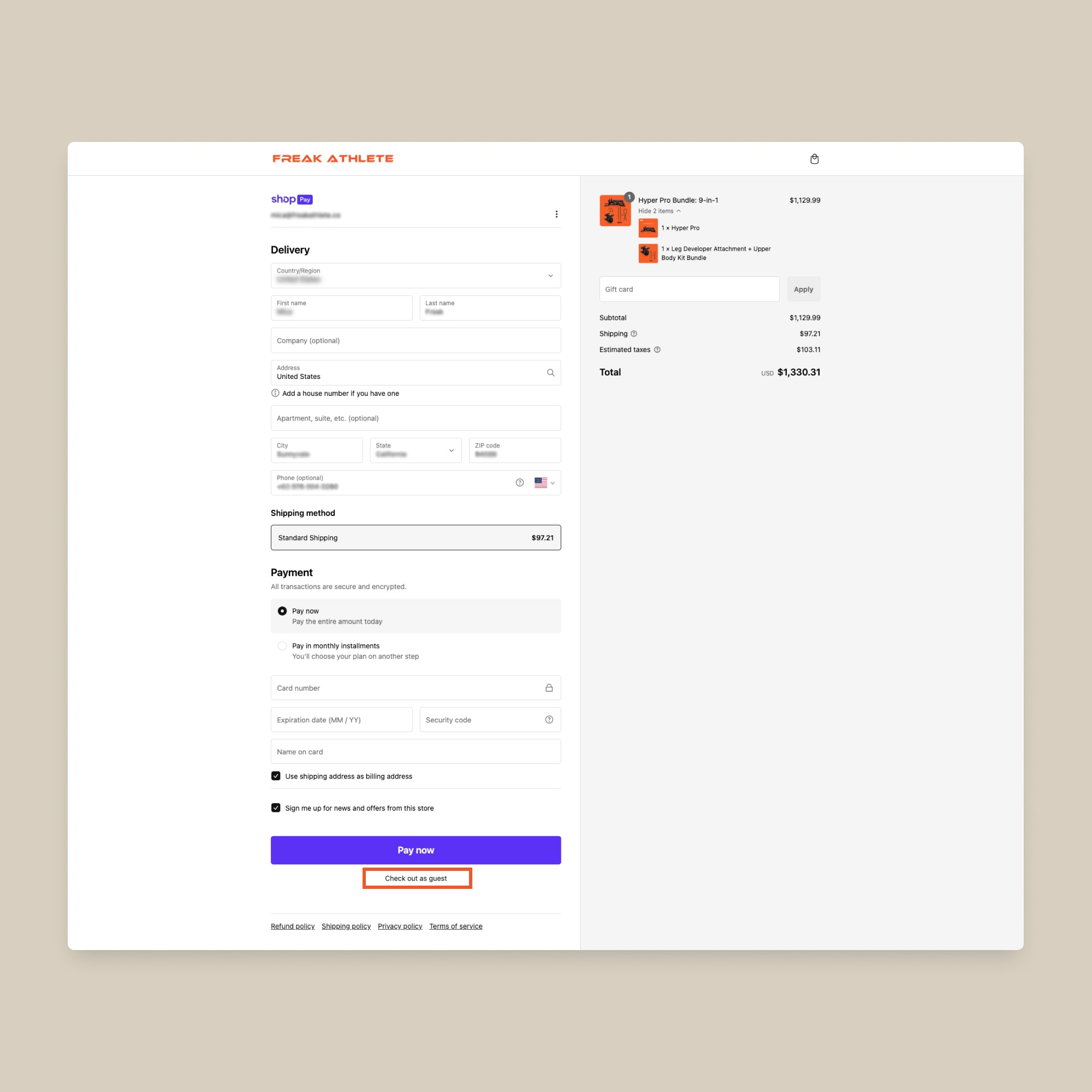 If you're signed in to ShopPay, check out as a guest