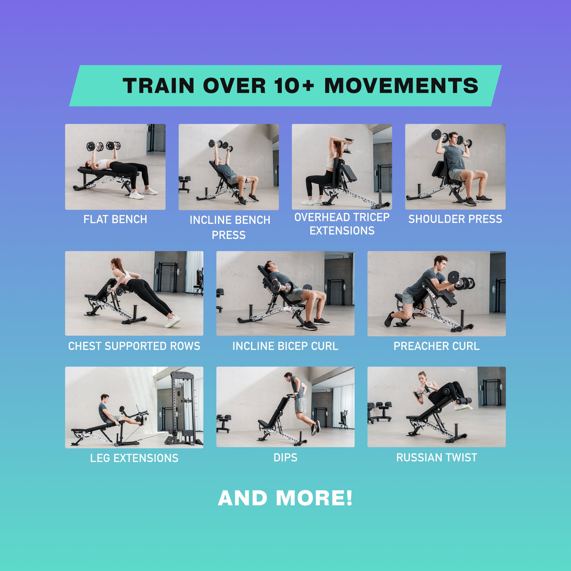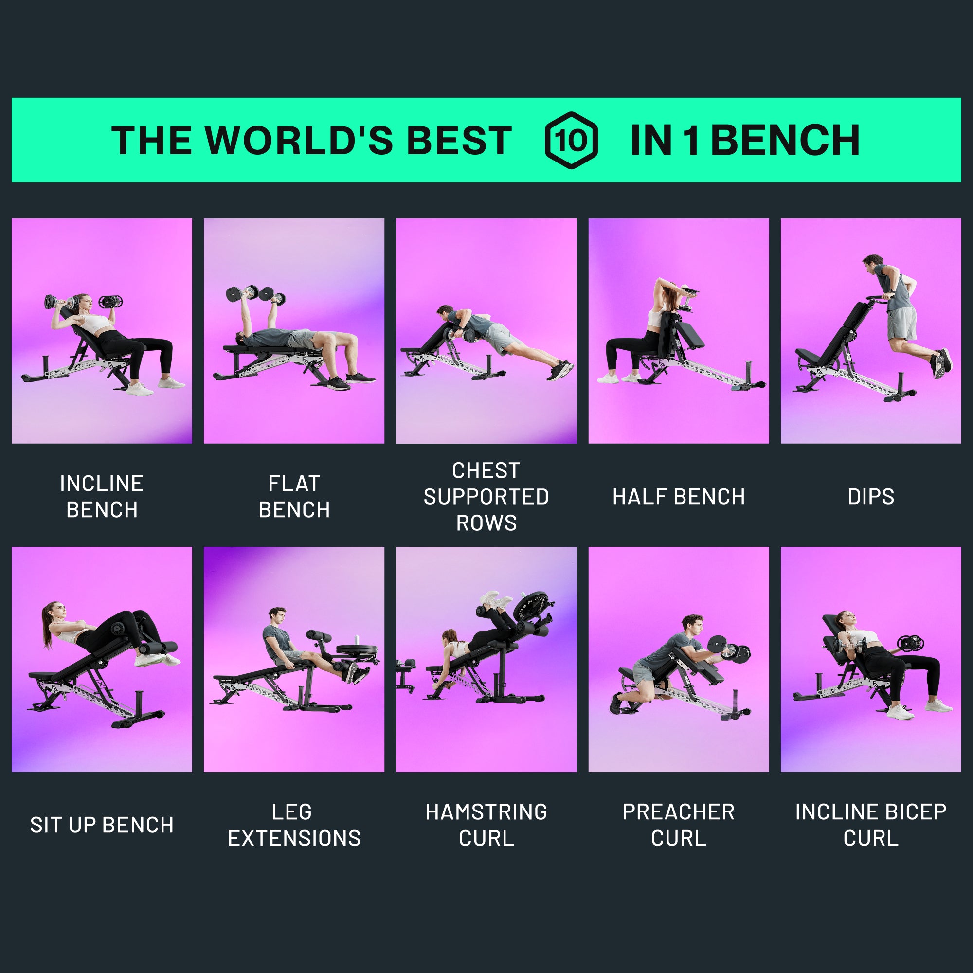 The world’s best weight bench. 10 machines in 1 for full-body training.