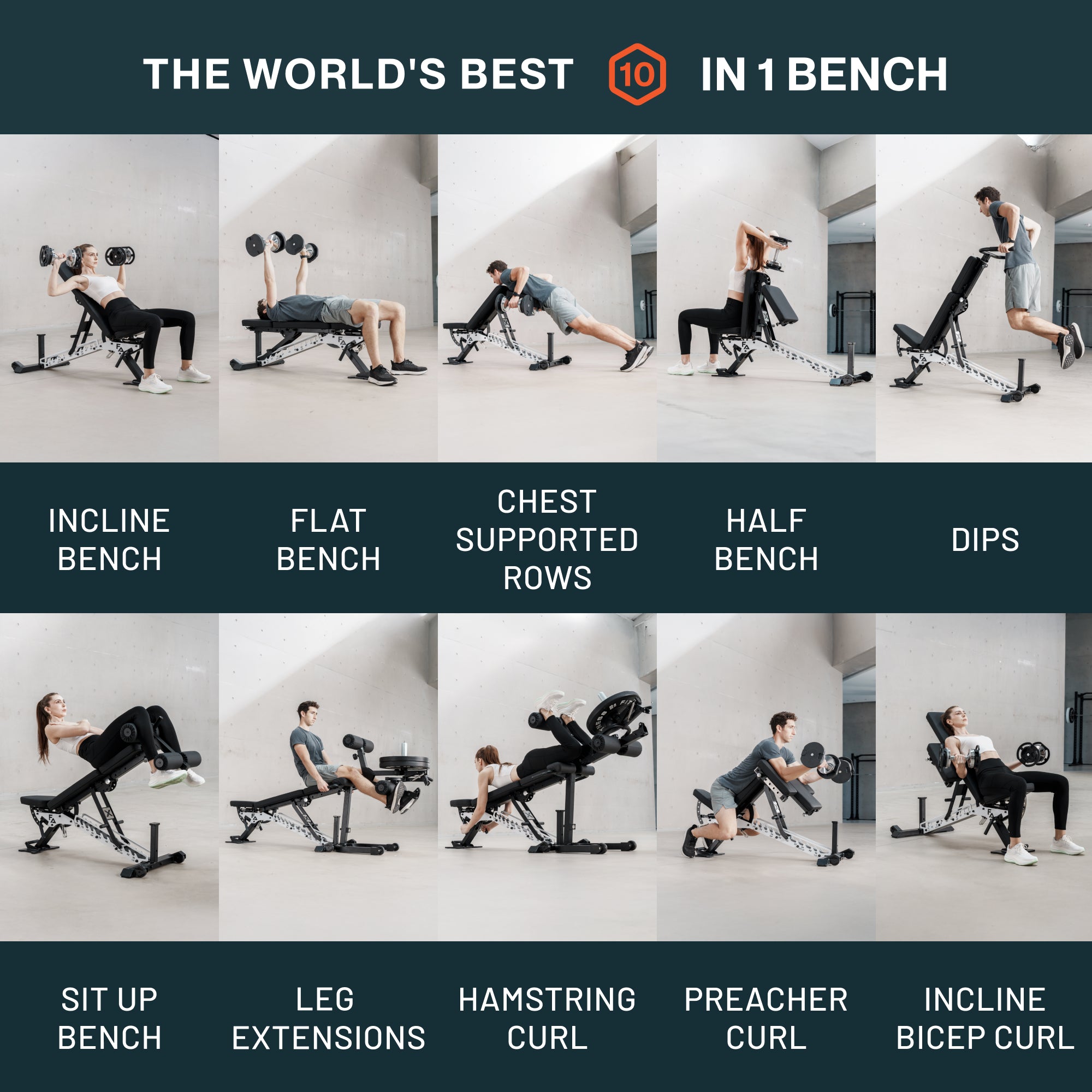 Features an angle-adjustable head rest to unlock full range of motion for overhead work, chest-supported rows, and more. Designed in partnership with Exponent Edge.