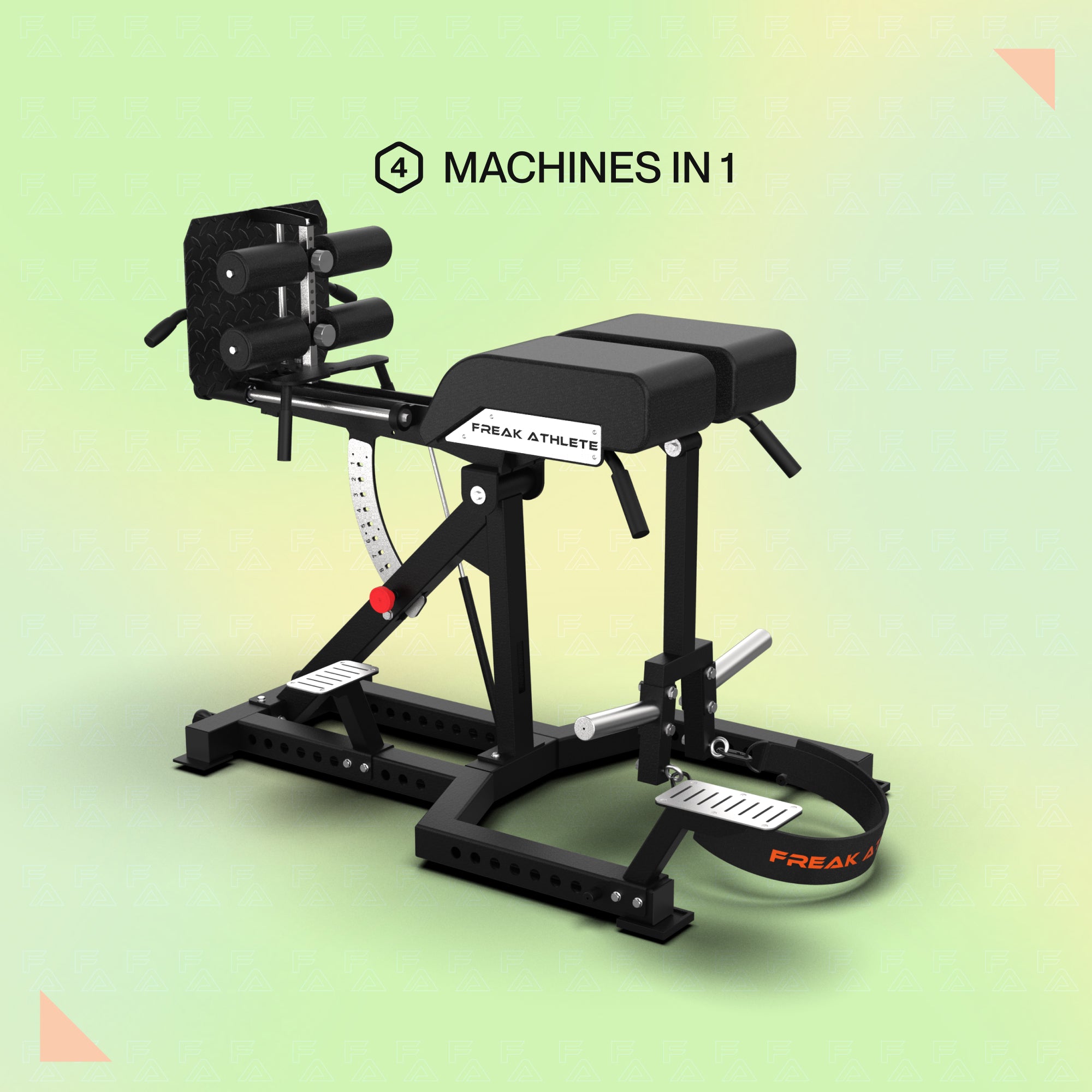 The ultimate, commercial grade machine for posterior chain training. 4 machines in 1: GHD, Back Extension, Hyperextension, and Nordic Bench.